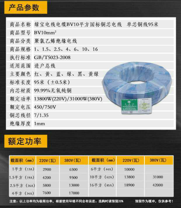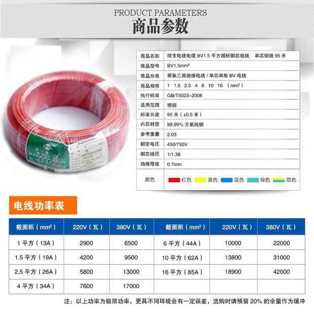 綠寶電線國標2.5/4/6/10/16純銅BV單芯電線