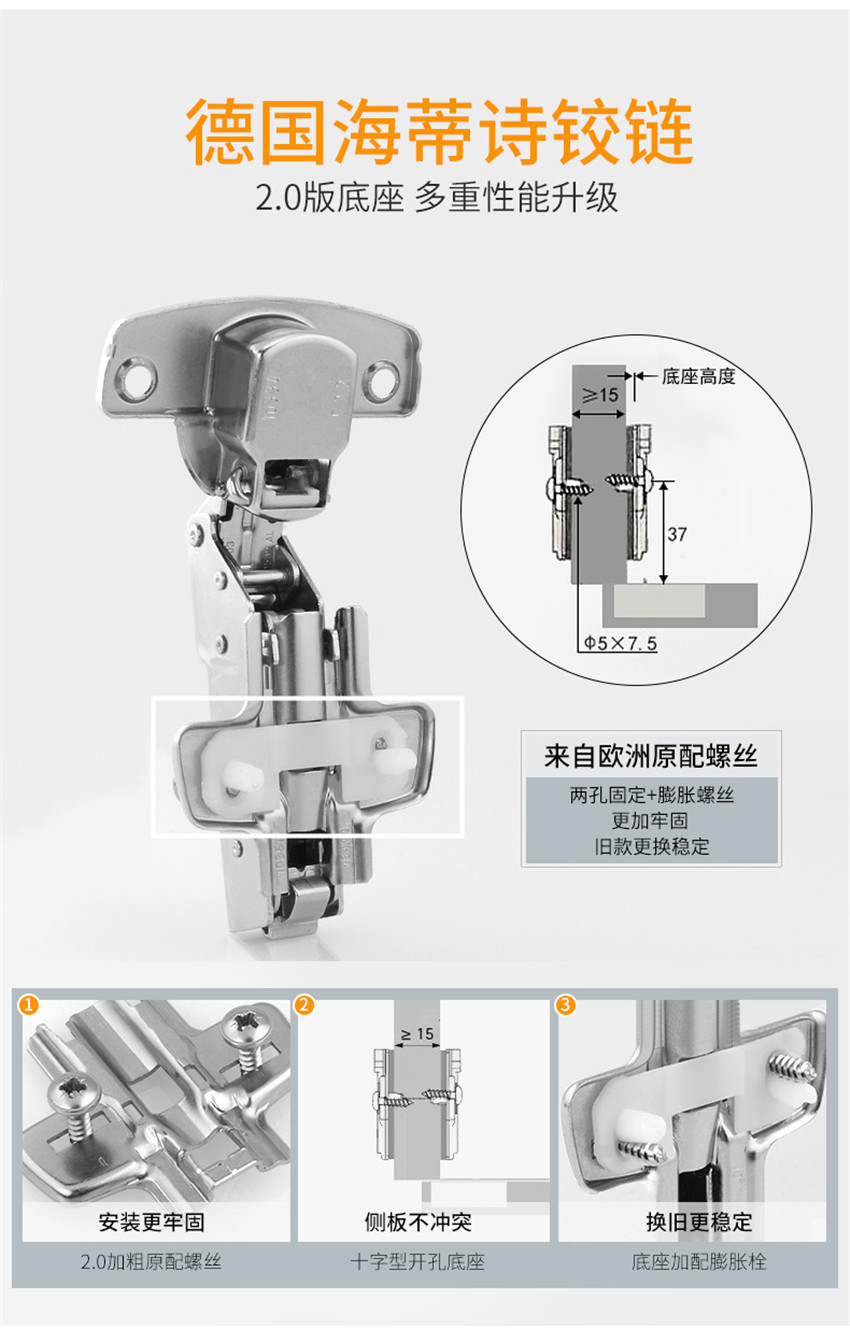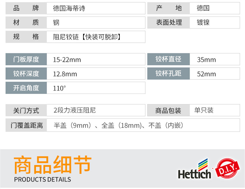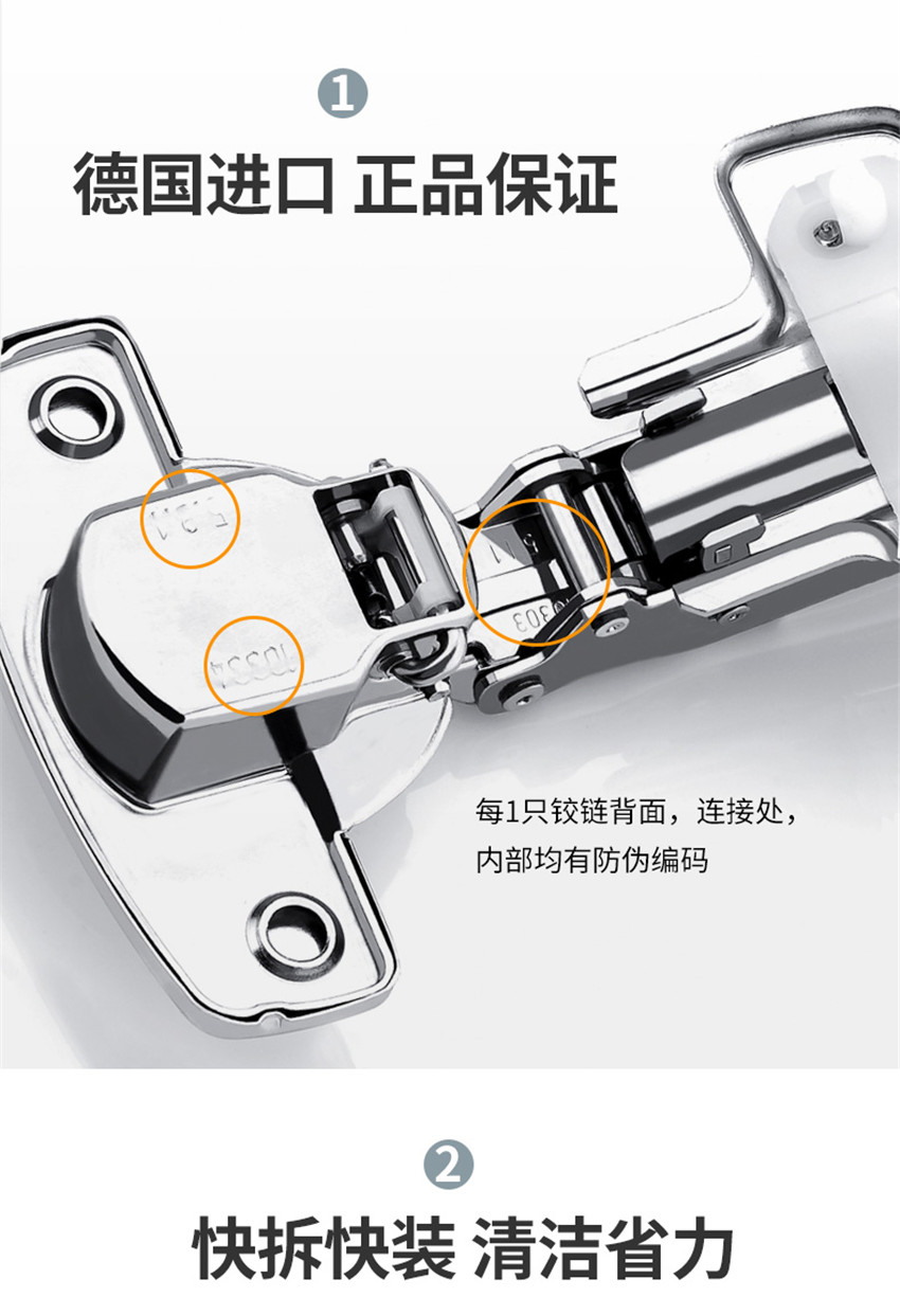 阻尼鉸鏈德國進口液壓緩沖合頁櫥柜門五金配件 全蓋直彎1只裝